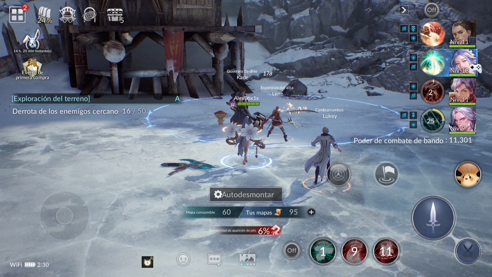 Aunque podemos controlar a nuestros personajes en todo momento, el juego cuenta con un modo automático que al presionar hará que todos los personajes luchen o se muevan por si solos al objetivo. Esta función puede ser algo aburrida, pero es de gran ayuda al momento de tener que farmear y nos evita la molestia de pasar un par de minutos haciendo la misma tarea.