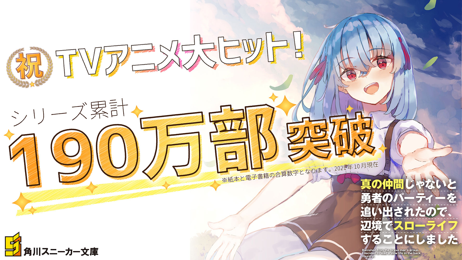 Según un reporte realizado por un editor del sello editorial Kadokawa Sneaker Bunko, la franquicia literaria Shin no Nakama janai to Yuusha no Party wo Oidasareta node, Henkyou de Slow Life Suru Koto ni Shimashita (Banished from the Hero’s Party, I Decided to Live a Quiet Life in the Countryside) logró superar los 1.9 millones de copias en circulación.