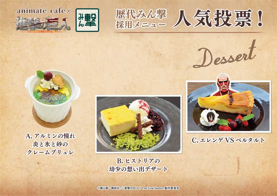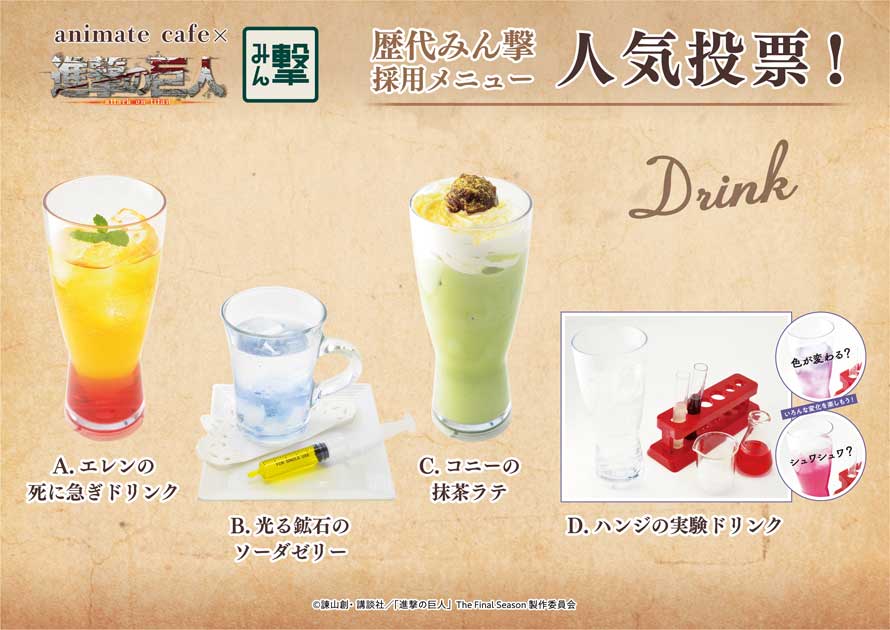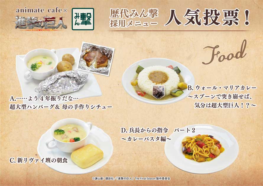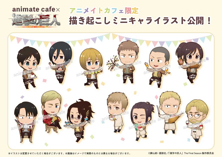 Para conmemorar el inminente estreno de la temporada final del anime Shingeki no Kyojin, la franquicia anunció una colaboración con Animate Cafe.