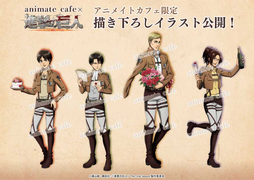 Para conmemorar el inminente estreno de la temporada final del anime Shingeki no Kyojin, la franquicia anunció una colaboración con Animate Cafe.