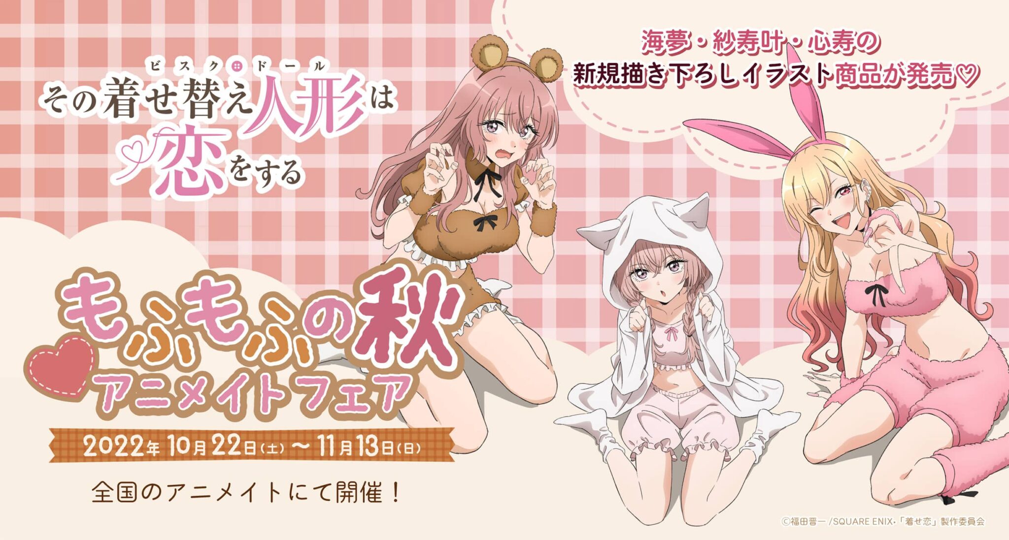 La compañia Movic presentó al público una nueva colaboración con la adaptación al anime del manga «Sono Bisque Doll wa Koi wo Suru» (My Dress-Up Darling) la cual consistirá en la producción de unos productos inspirados en una visual especial protagonizada por los personajes Marin Kitagawa, Shinju Inui y Sajuna Inui, quienes lucirán unos adorables trajes de animales.