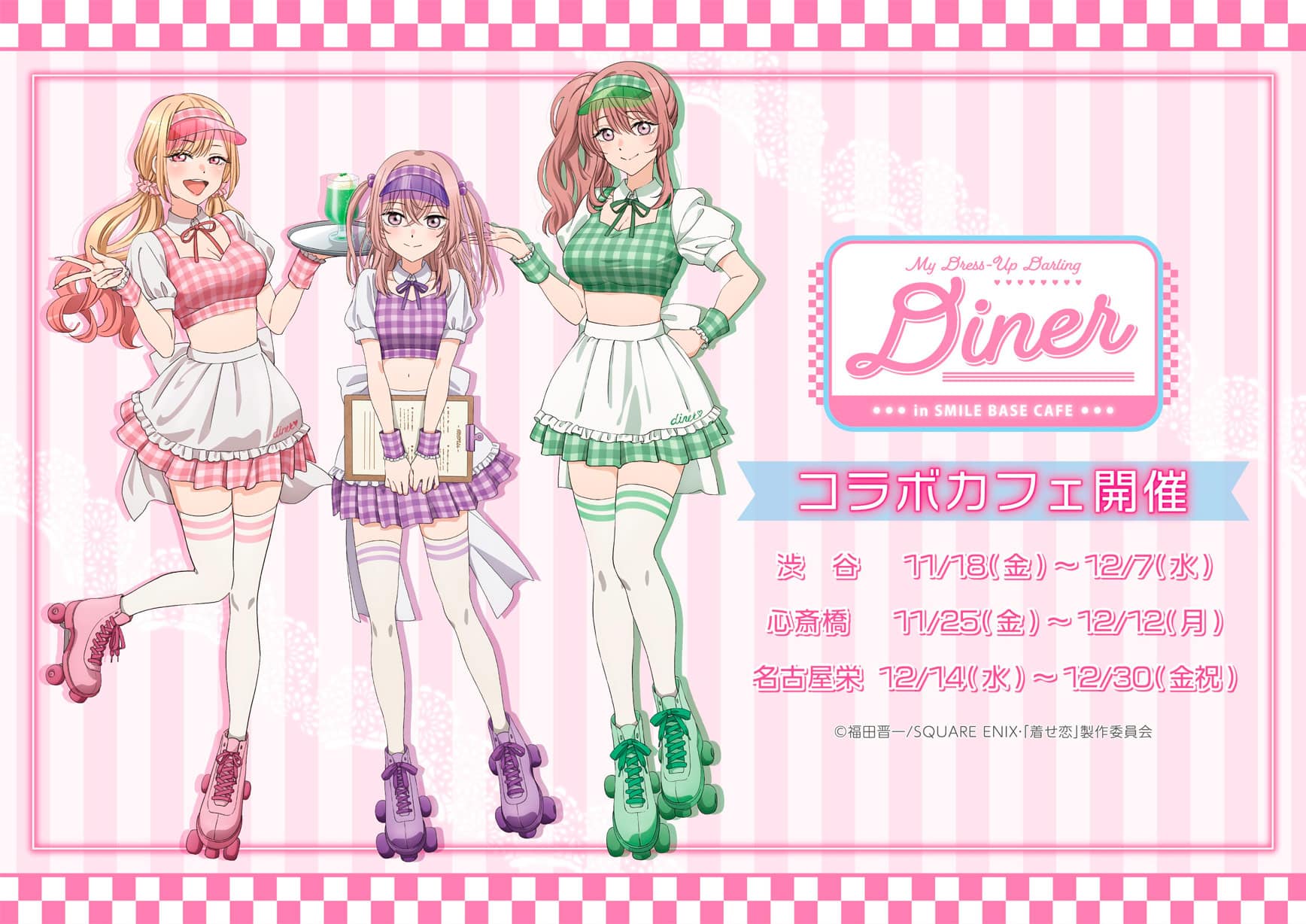 En esta ocasión, fue la cafetería «Smile Base Cafe» quien se animó a realizar una interesante colaboración con el anime Sono Bisque Doll wa Koi wo Suru y por medio de su cuenta oficial de Twitter y su respectivo sitio web, se han brindado algunos detalles para esta colaboración que será protagonizada por las waifus de la serie Marin Kitagawa, Shinju Inui y Sajuna Inui. Adicionalmente, Smile Base Cafe preparó una imagen promocional para esta colaboración especial.