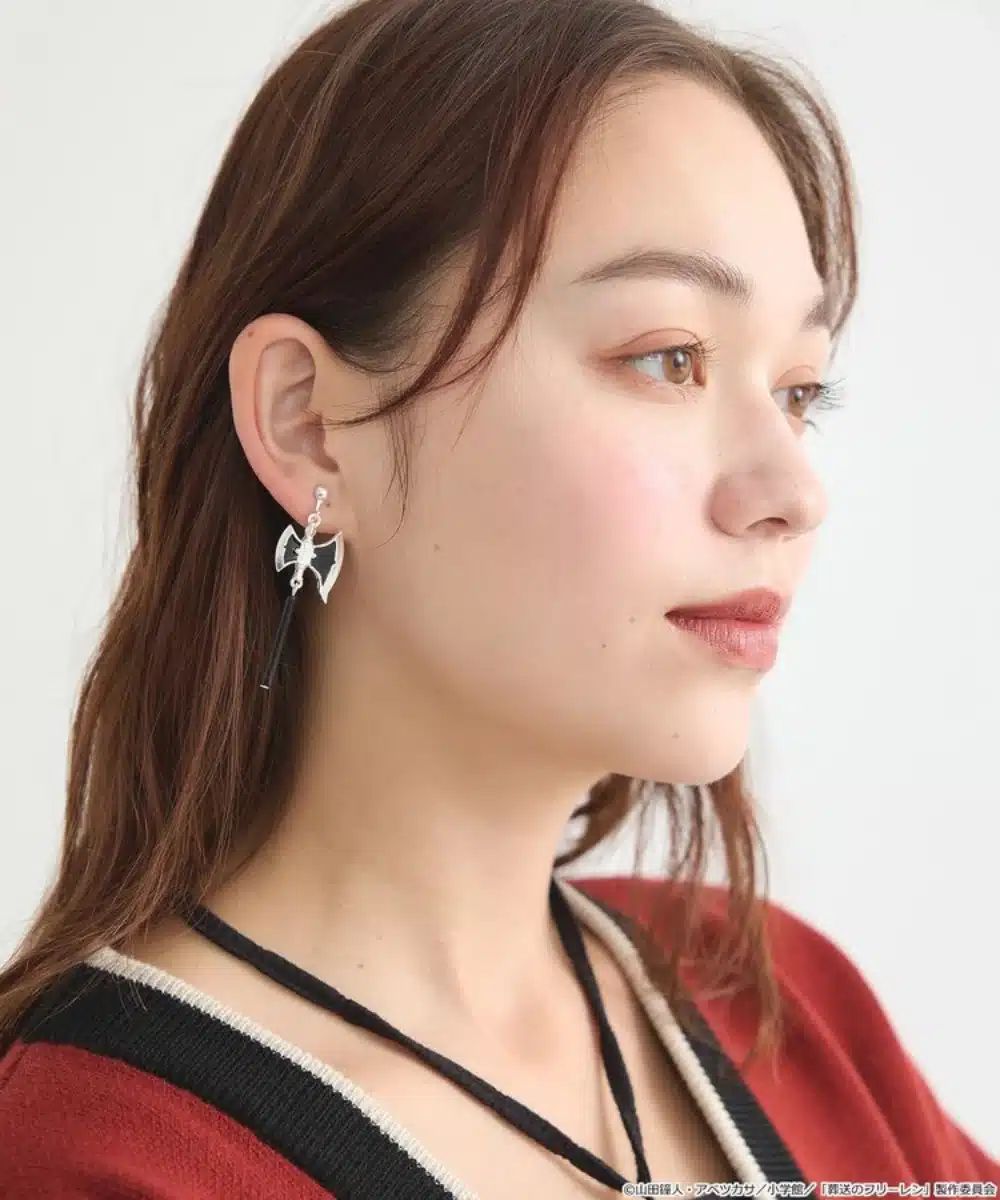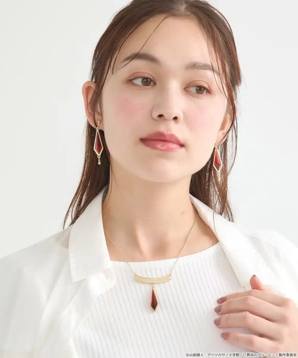 Además de ofrecer ropa de la party principal de Frieren: Beyond Journey’s End (Sousou no Frieren), la colaboración ofrece artículos inspirados en otros personajes fundamentales del anime. Flamme, la poderosa hechicera del pasado y mentora de Frieren, ha inspirado un conjunto de joyería de apariencia sofisticada. Tiene detalles góticos que reflejan su sabiduría arcana y su estilo distinguido.