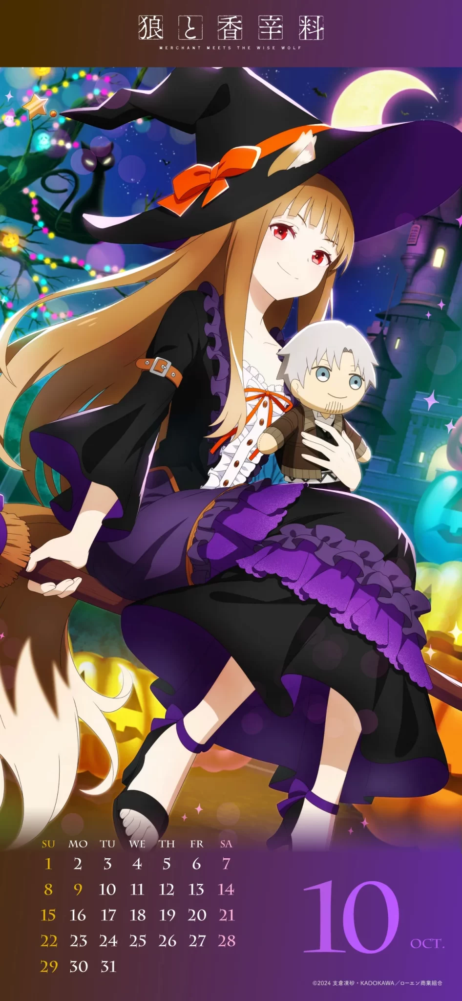 No obstante, las novedades no terminan ahí, ya que los medios oficiales del recién estrenado anime de ‘Spice and Wolf‘ han revelado una fascinante variante de la ilustración de Holo, concebida para desempeñar el papel de calendario, detallando cada día de este mes de octubre.