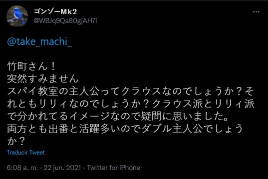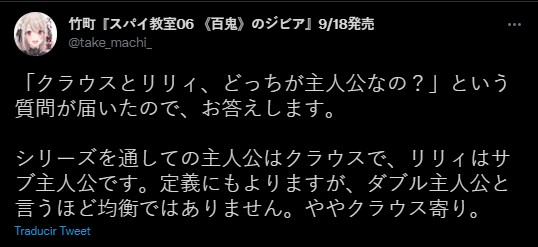 ¡Takemachi-san! Siento irrumpir así. ¿Es Klaus el protagonista de la obra? ¿O es Lily? Me preguntaba porque tengo la imagen de que hay dos personajes principales, uno es Klaus y el otro es Lily. Me preguntaba si son los protagonistas porque ambos tienen muchas apariciones y actividades.