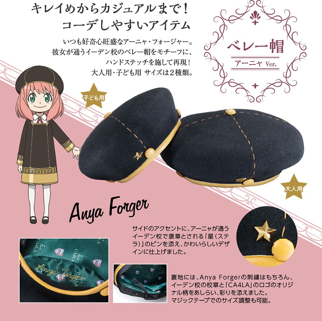 Dentro de los detalles que presenta la boina podemos apreciar la «Stella» que gano Anya en la serie, y que porta con orgullo en su boina, a su vez vemos que los detalles dorados en el bordado de la boina, con su tapizado principalmente oscuro. Pero por si fuera poco, dentro del gorro podemos ver como este se encuentra con una tela verde que tiene grabado el escudo de la escuela e inclusive tiene grabado el nombre del personaje dentro del mismo. Sin lugar a dudas es un producto que no te puedes perder y por el precio de 18,700 yenes (125 dólares aproximadamente) podrá ser tuyo si es que te apresuras en comprarlo.