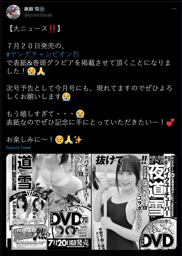 Por medio de su cuenta personal de Twitter, la seiyuu Yuki Yomichi, quien da voz a la protagonista Koguma del anime Super Cub, compartió una publicación donde menciona que protagonizó la portada del nuevo número de la revista Young Champion.