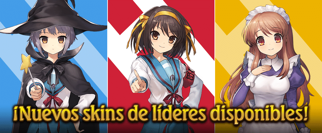 Ademas, podrás adquirir skins de de las protagonistas del anime, las cuales estarán a la venta por tiempo limitado en la tienda. Cada skin de líder tiene un costo de 500 cristales, e incluye un emblema, un tag y un dorso correspondiente.