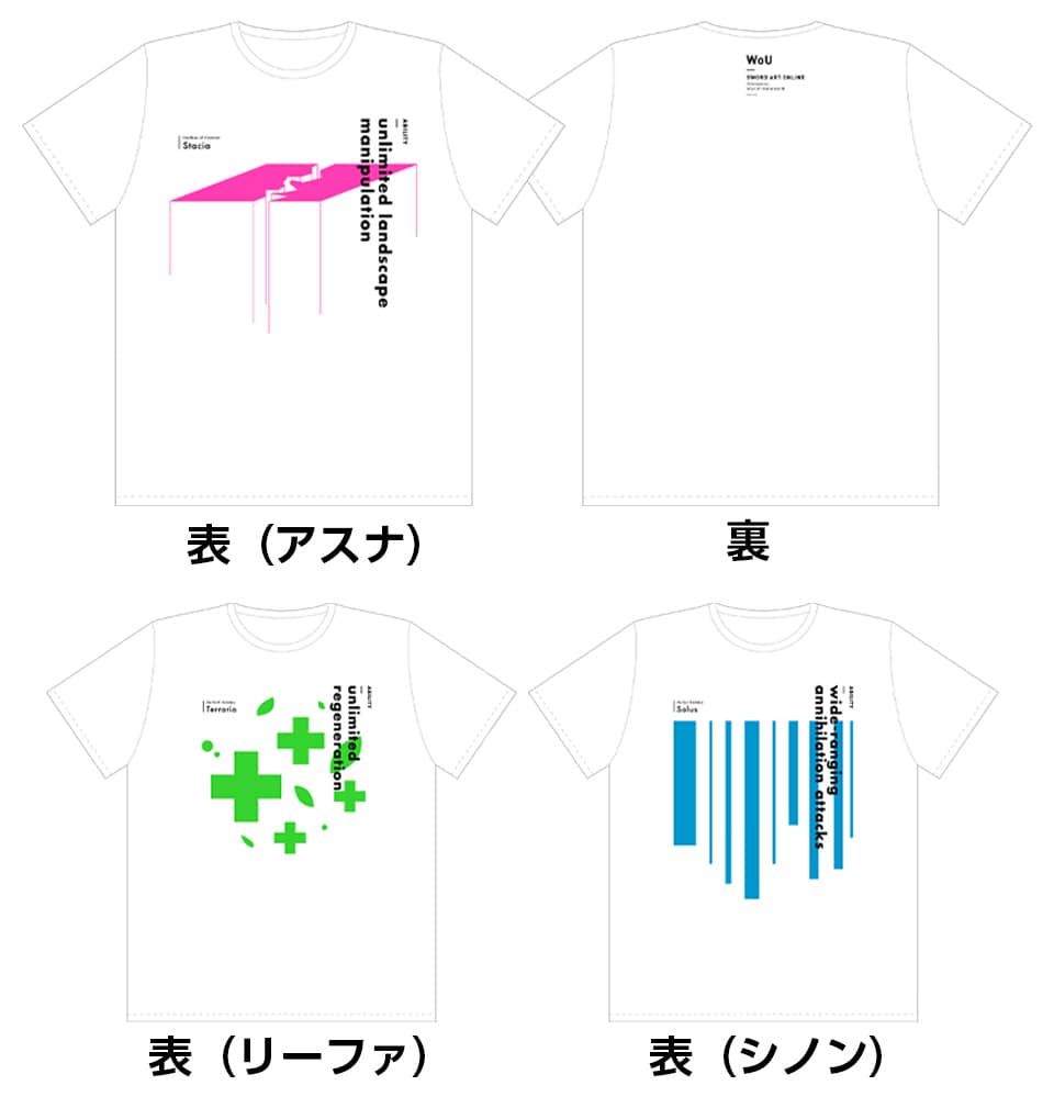 Una colecciรณn de camisetas con estampados inspirados en las habilidades especiales de las chicas, cada una por 3,750 yenes.