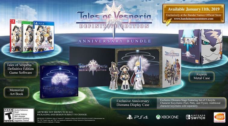 Tales of Vesperia: Definitive Edition se lanzara el 11 de Enero del 2019 para PlayStation 4, Xbox One, PC y Nintendo Switch.