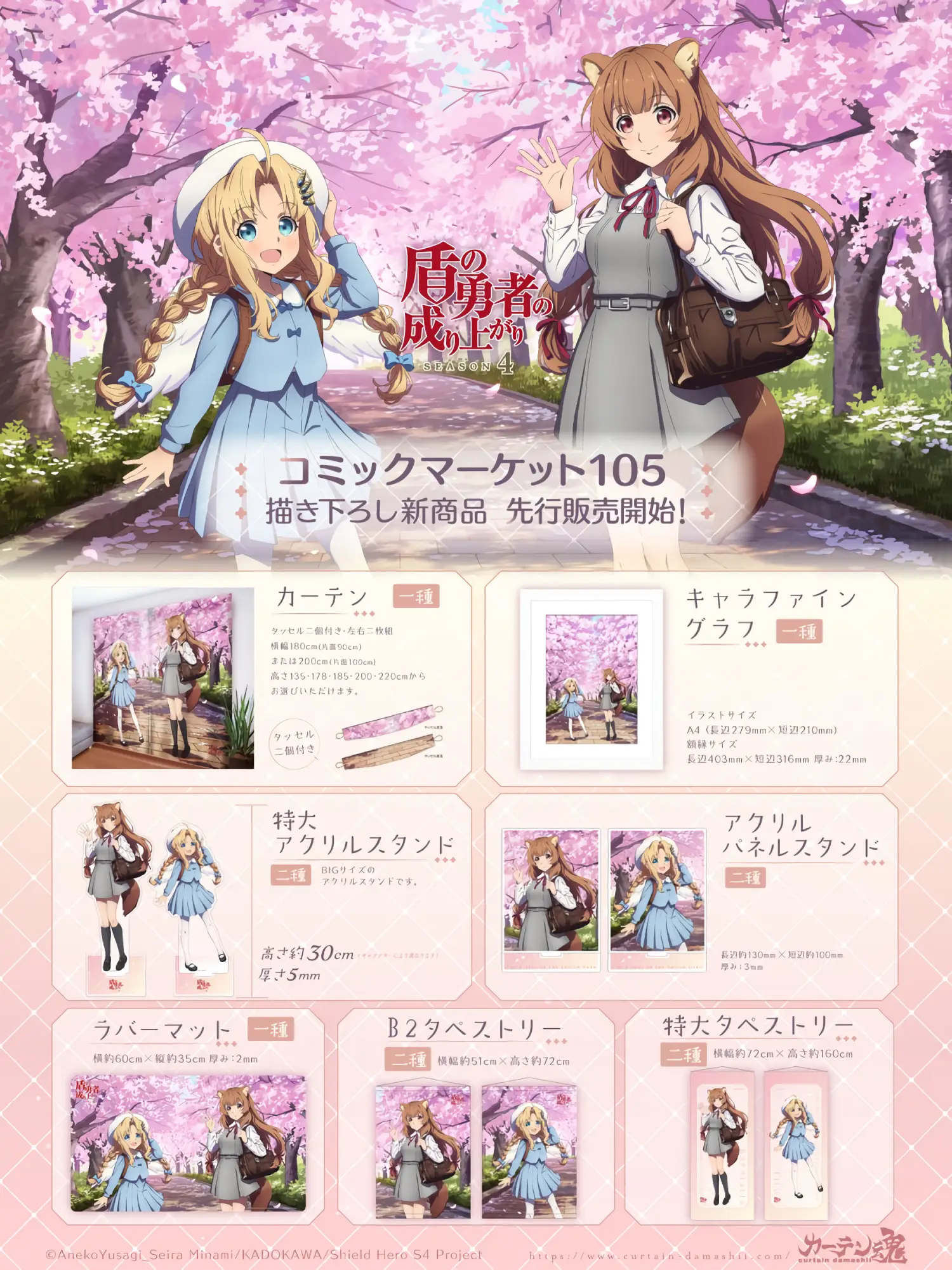 Es importante destacar que la colaboraciรณn entre la serie de anime Tate no Yuusha no Nariagari y la compaรฑรญa japonesa Curtain Damashii tiene como propรณsito captar la atenciรณn de los fanรกticos de esta popular franquicia durante el evento Comic Market 105 (Comiket 105), programado para realizarse los dรญas 29 y 30 de diciembre de este aรฑo.