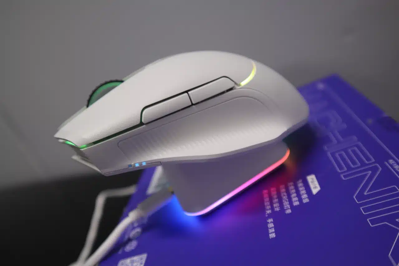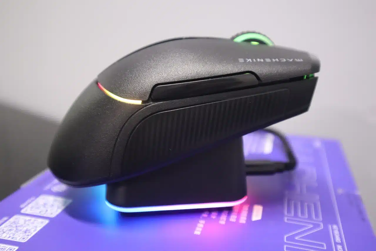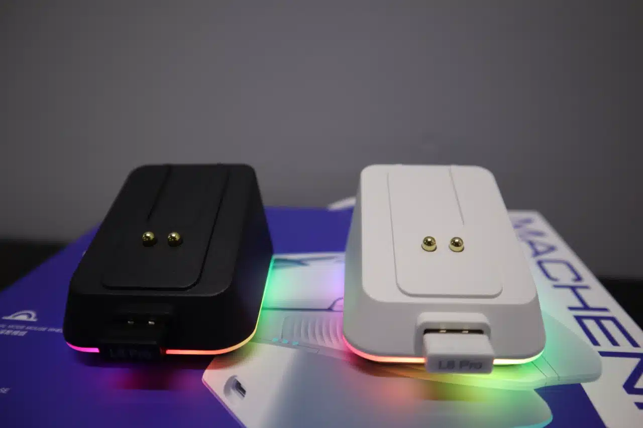 El Machenike L8 PRO no solo impresiona por su rendimiento, sino también por su estética. Viene con una base de carga con luces RGB de alta calidad, que añade un toque estético a tu espacio de juego o trabajo. Esta base carga el ratón de manera eficiente, mientras sirve como un atractivo accesorio de escritorio.