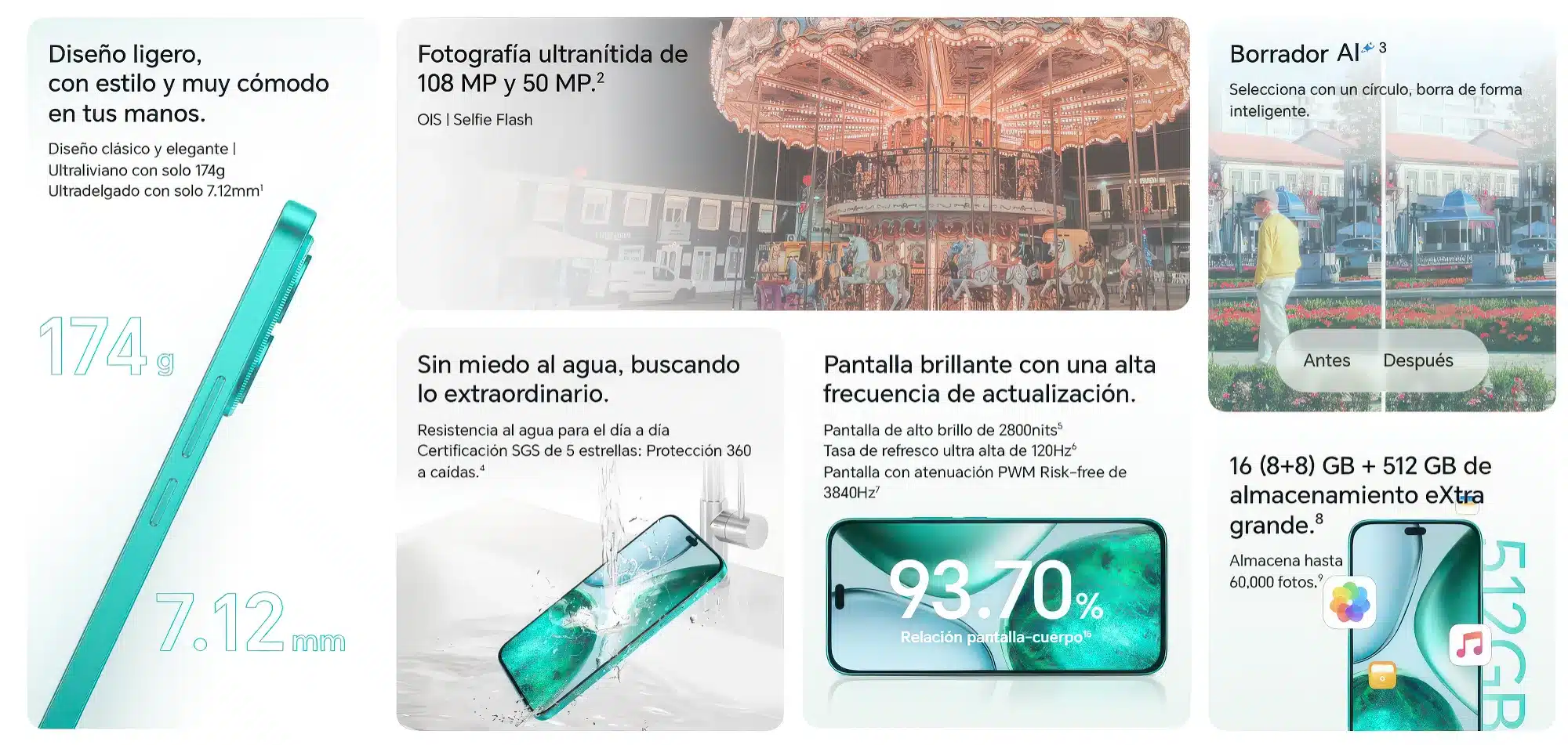 Además, el dispositivo cuenta con certificación SGS de 5 estrellas , que lo protege contra caídas accidentales y desgaste diario. Su resistencia al agua añade una capa extra de durabilidad, ideal para usuarios activos que enfrentan condiciones imprevistas.