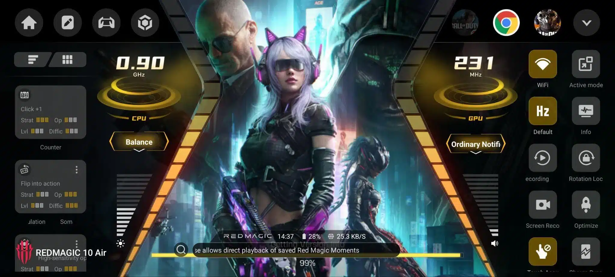 Con una baterรญa de 6,000mAh, el REDMAGIC 10 Air ofrece hasta 28 horas de uso mixto y cuenta con carga rรกpida de 80W, lo que segรบn pruebas realizadas por la marca, permite alcanzar el 50% de carga en solo 15 minutos. Su optimizaciรณn inteligente de recursos prioriza el consumo de energรญa durante los juegos, lo que significa que no importa el nivel de carga siempre obtendrรกs el mรกximo rendimiento, evitando caรญdas bruscas de rendimiento. Permitiendo sesiones de juego largas y sin pausas.