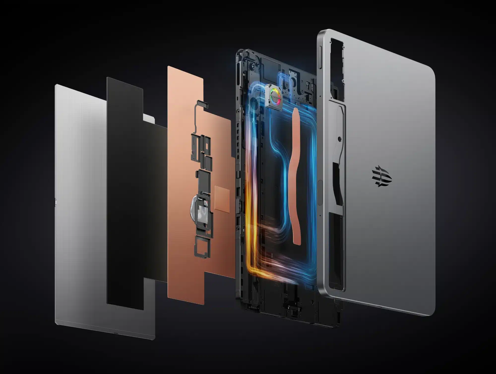 Uno de los mayores desafíos en dispositivos gaming es el manejo del calor, especialmente en formatos compactos como las tablets. REDMAGIC ha abordado este problema con una solución innovadora: un sistema de refrigeración de 9 capas que incluye un ventilador interno de 20,000 RPM, una primicia en el mundo de las tablets.