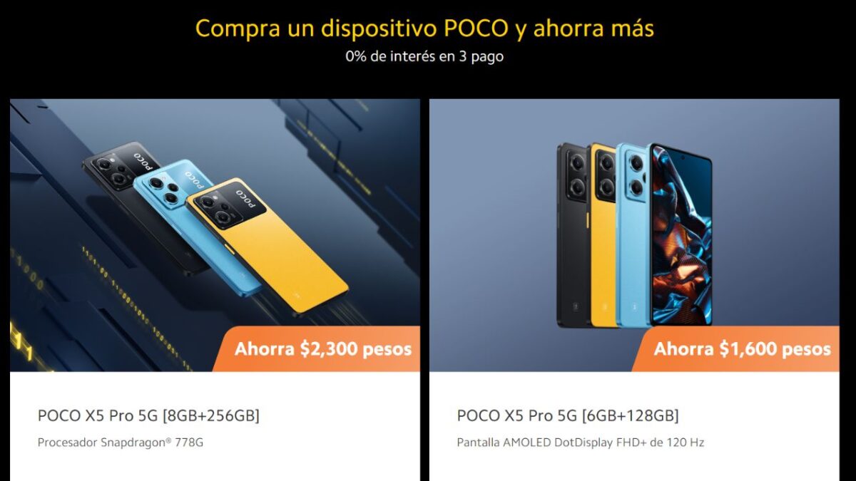 - POCO X5 Pro 8+256 a $5,199 pesos en Mercado Libre y el sitio oficial.