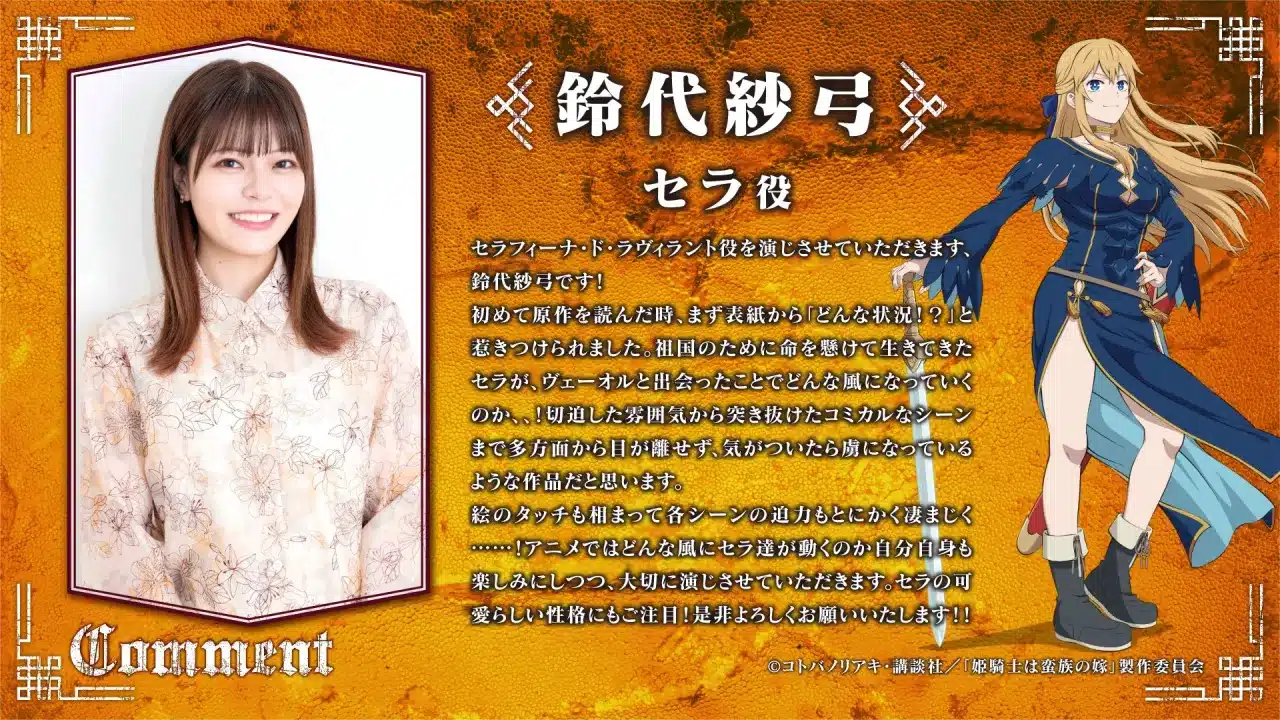 La actriz de voz Sayumi Suzushiro, conocida por interpretar a Nijika Ijichi en Bocchi the Rock! y Kei Shirogane en Kaguya-sama: Love is War, dará voz a Serafina De Lavillant