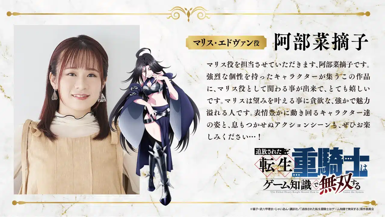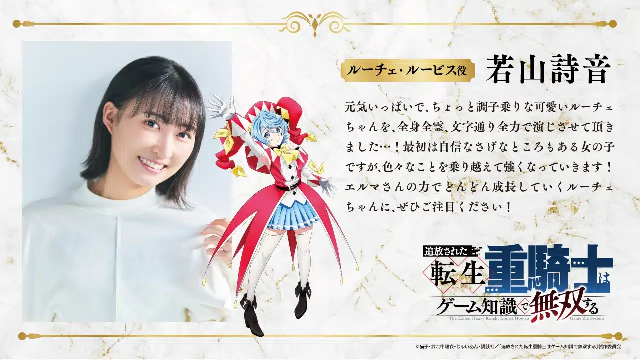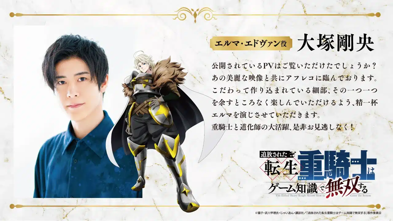 Pero eso no es todo, ya que en el sitio web oficial del anime The Exiled Heavy Knight Knows How to Game the System se presentó a los primeros integrantes del elenco de voz, así como al equipo de producción que participara en la serie.