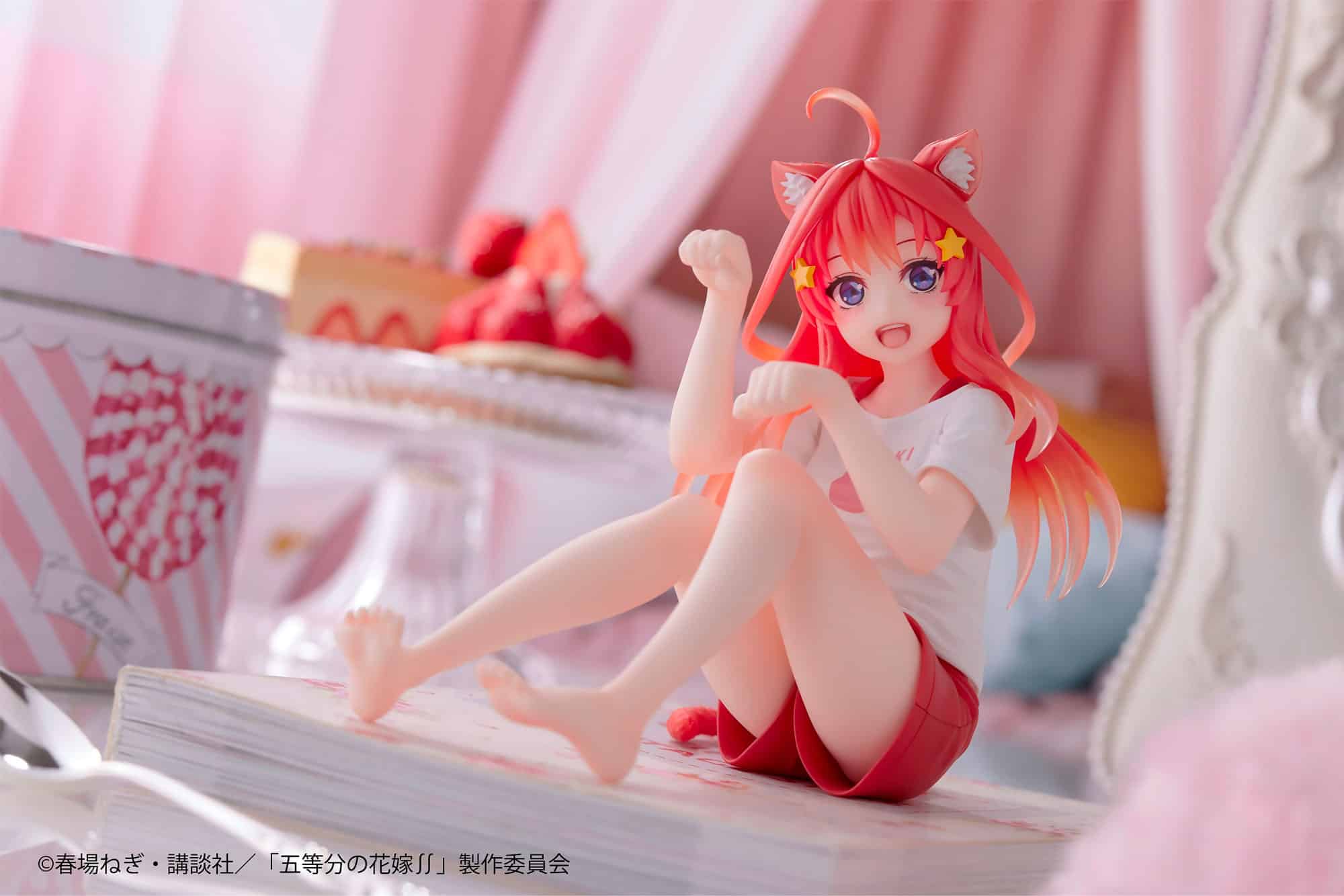 La nueva figura de Itsuki Nakano presenta una reimaginaciรณn detallada que captura a la perfecciรณn la esencia adorable y la belleza de la waifu. Ademรกs, este producto contarรก con ciertas caracterรญsticas especรญficas para la ocasiรณn, ya que se le han aรฑadido unas orejas y cola de gato para darle una ยซactitud gatunaยป a Itsuki.