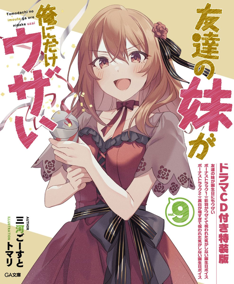 En el Twitter oficial para la franquicia Tomodachi no Imouto ga Ore ni Dake Uzai (My Friend’s Little Sister Has It In for Me!) se han revelado las portadas de las ediciones estándar y especial para el noveno volumen de la novela ligera. Además, también se confirmó que este volumen se lanzará a la venta en Japón el próximo 14 de enero de 2022.