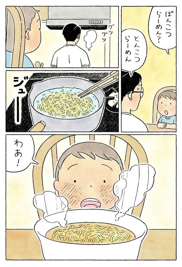 El manga que ha dado tanto que hablar se titula Oyako Seimen y era una obra corta de ocho páginas que mostraba como un padre cocinaba ramen para él y su hijo; y posteriormente, la madre regresaba del trabajo para lavar junto al padre los platos juntos.