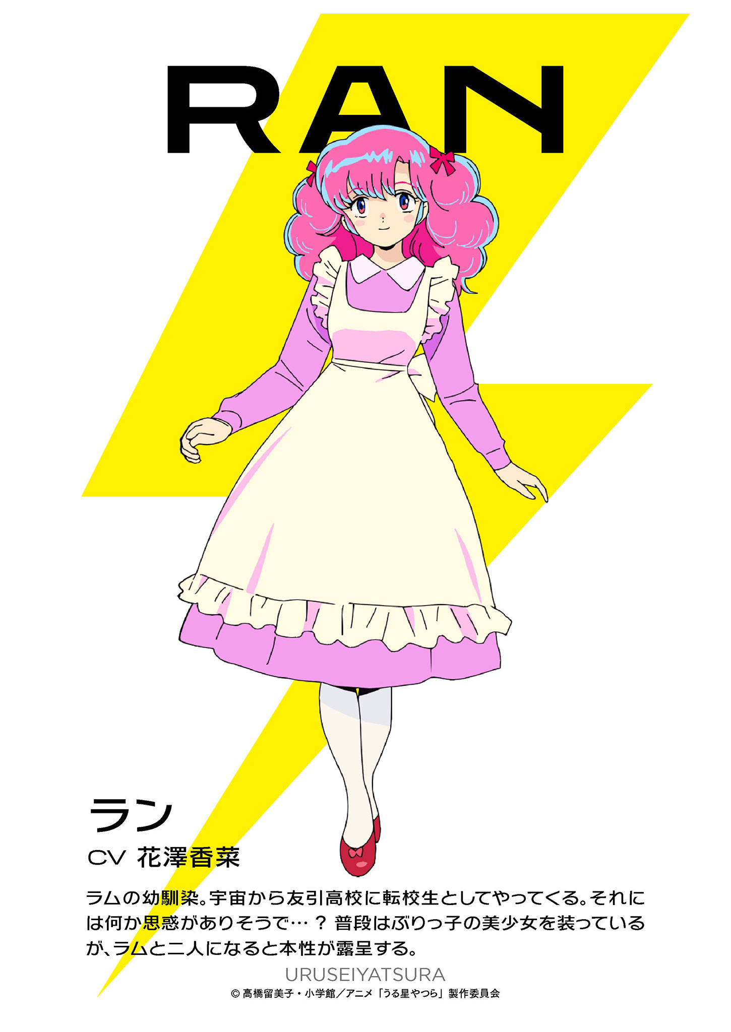 En el sitio web oficial para la nueva adaptación al anime del manga «Urusei Yatsura» se confirmó que la serie emitirá sus dos primeras partes de manera consecutivas desde su estreno en el mes de octubre de este año. Adicionalmente, se ha revelado una nueva imagen visual del personaje Ran, y se anunció que la actriz de voz Kana Hanazawa se encargará de interpretar al personaje.