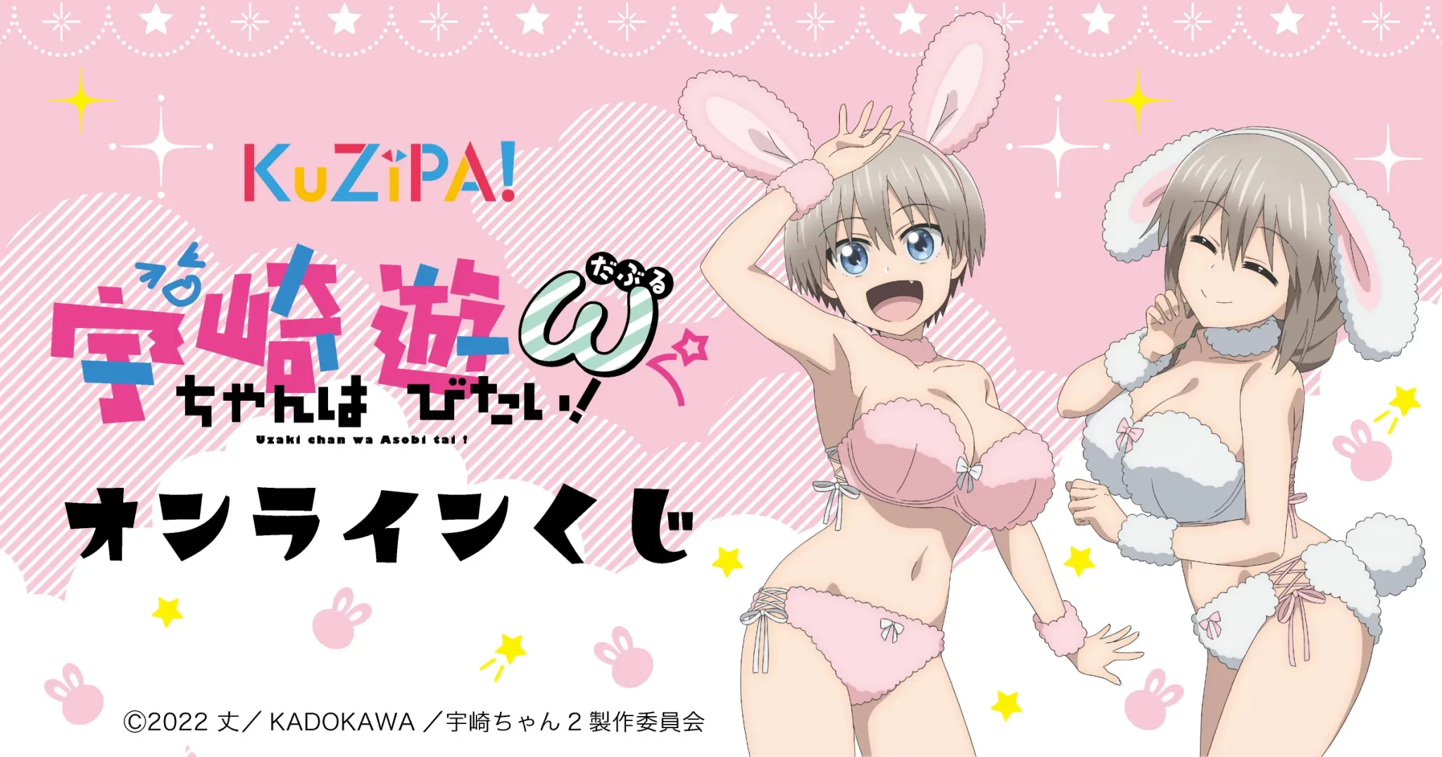 La compañia de Japón que decidió anunciar una nueva colaboración con el anime «Uzaki-Chan wa Asobitai!» fue «KuZiPA!» y en sus medios oficiales presentó la primera imagen promocional para este interesante evento que consistirá en la realización de un sorteo en donde se expondrán diversos productos inspirados en los personajes Hana Uzaki y Tsuki Uzaki que funcionarán como premios para aquellas personas que saquen el boleto ganador.