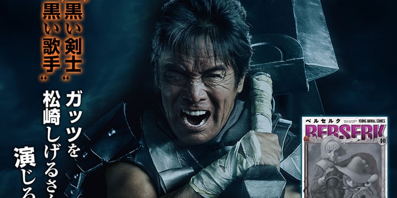La web oficial de la revista Young Animal de Hakusenshaย comenzรณ la transmisiรณn del vรญdeo promocional live-action para el volumen 40 del del manga Berzerk.ย Shigeru Matsuzakiย retrata a Guts en el vรญdeo.