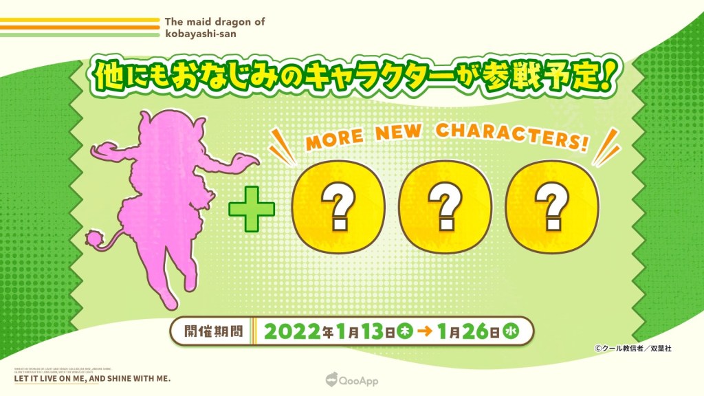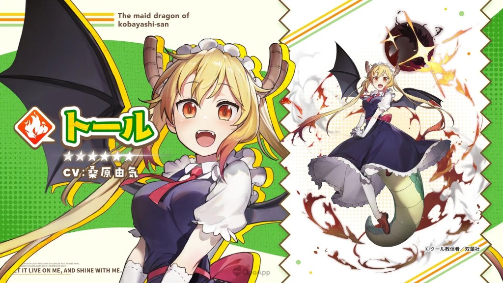 Incluso se reveló la imagen visual de Tohru como uno de los personajes jugables. Detalles de la colaboración serán revelados con el pasar de las semanas, no obstante, durante el livestream se aseguró que habrá más personajes jugables de Kobayashi-san Chi no Maid Dragon durante la campaña de medio aniversario.