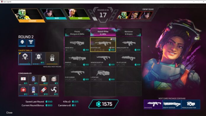 - Extravagantes Arenas de Rampart: Rampart se ha infiltrado en las Arenas, ofreciendo armas modificadas con descuentos especiales. Estas versiones rebajadas reemplazan su versión básica para la partida, lo que hace que los niveles inferiores de esa arma no estén disponibles.