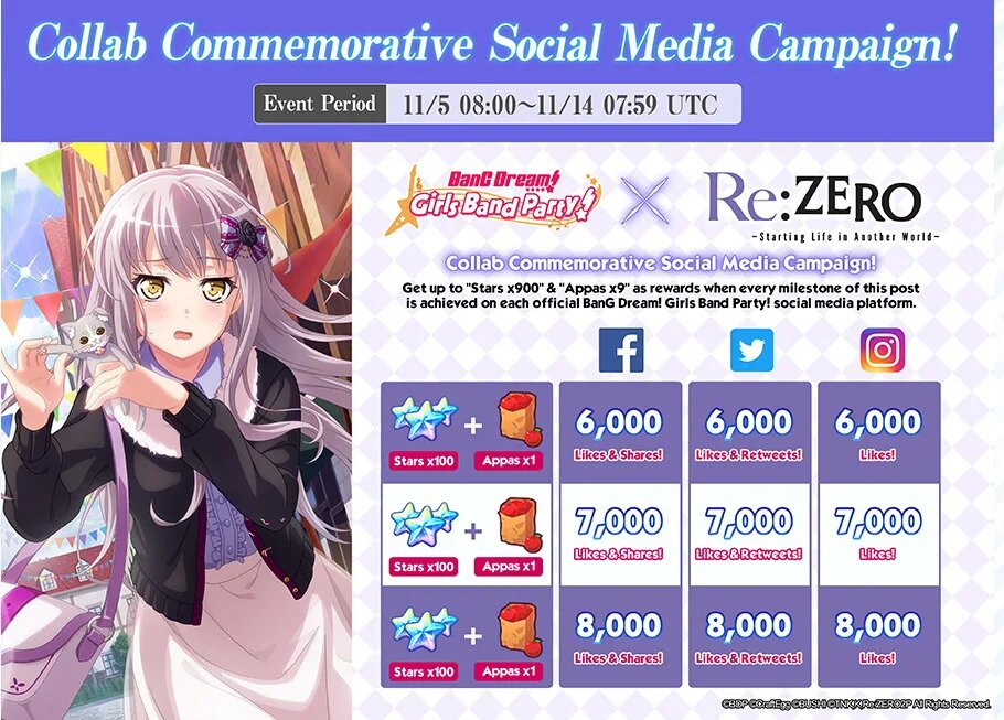 El videojuego para smartphones BanG Dream! anunció una colaboración con la popular franquicia Re:Zero para realizar un evento especial que estará disponible a partir del 20 de noviembre de 2020.