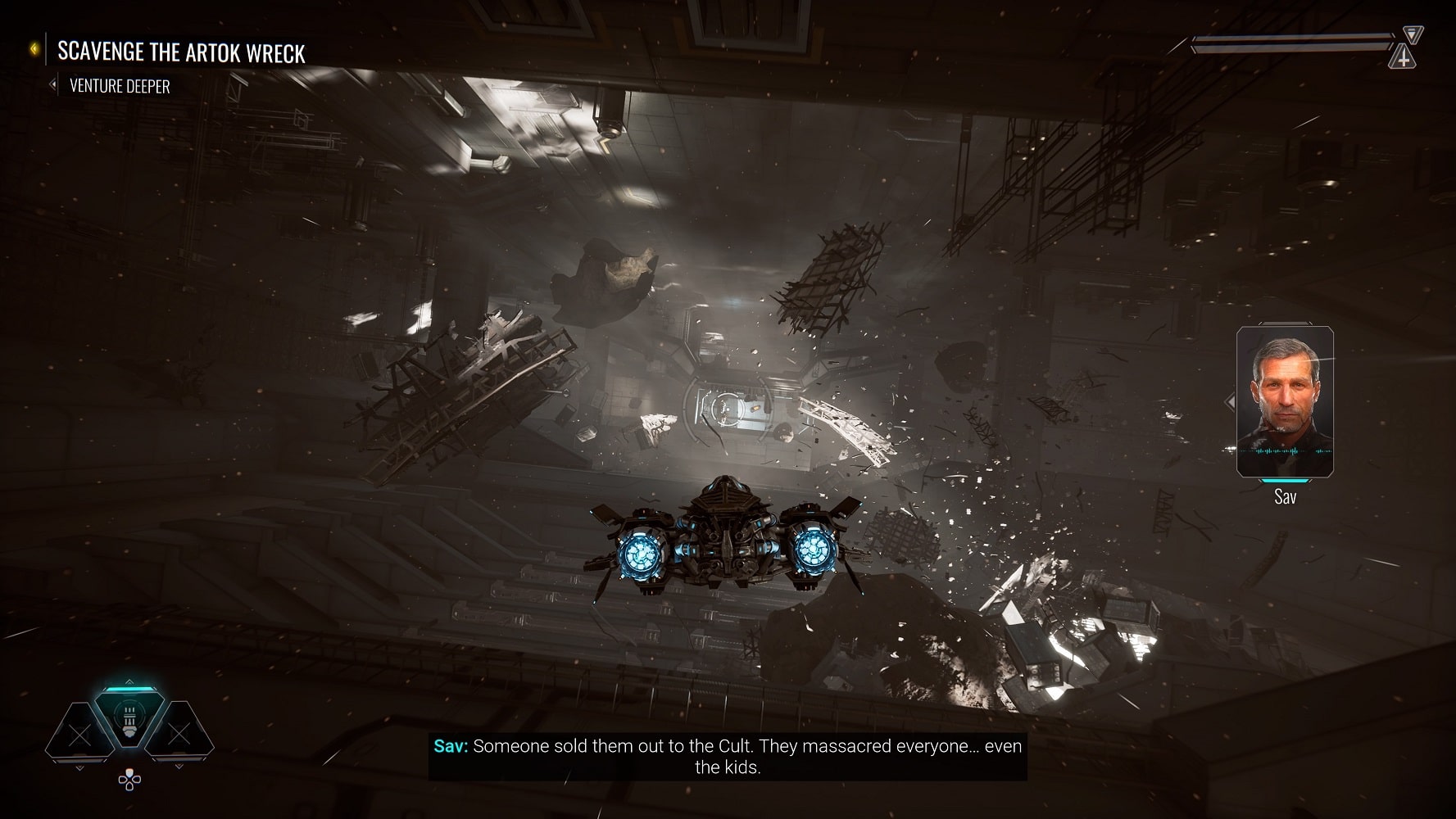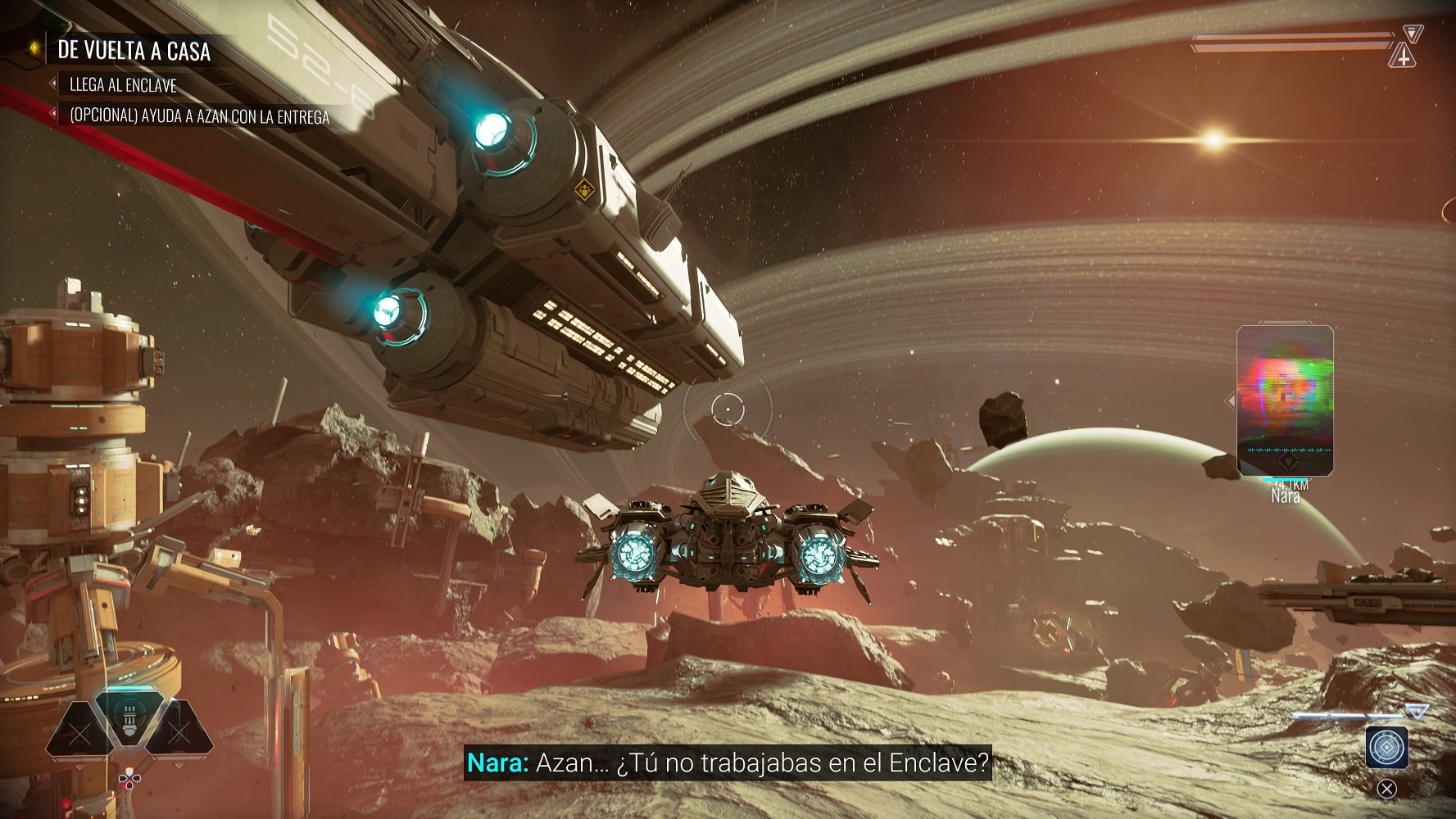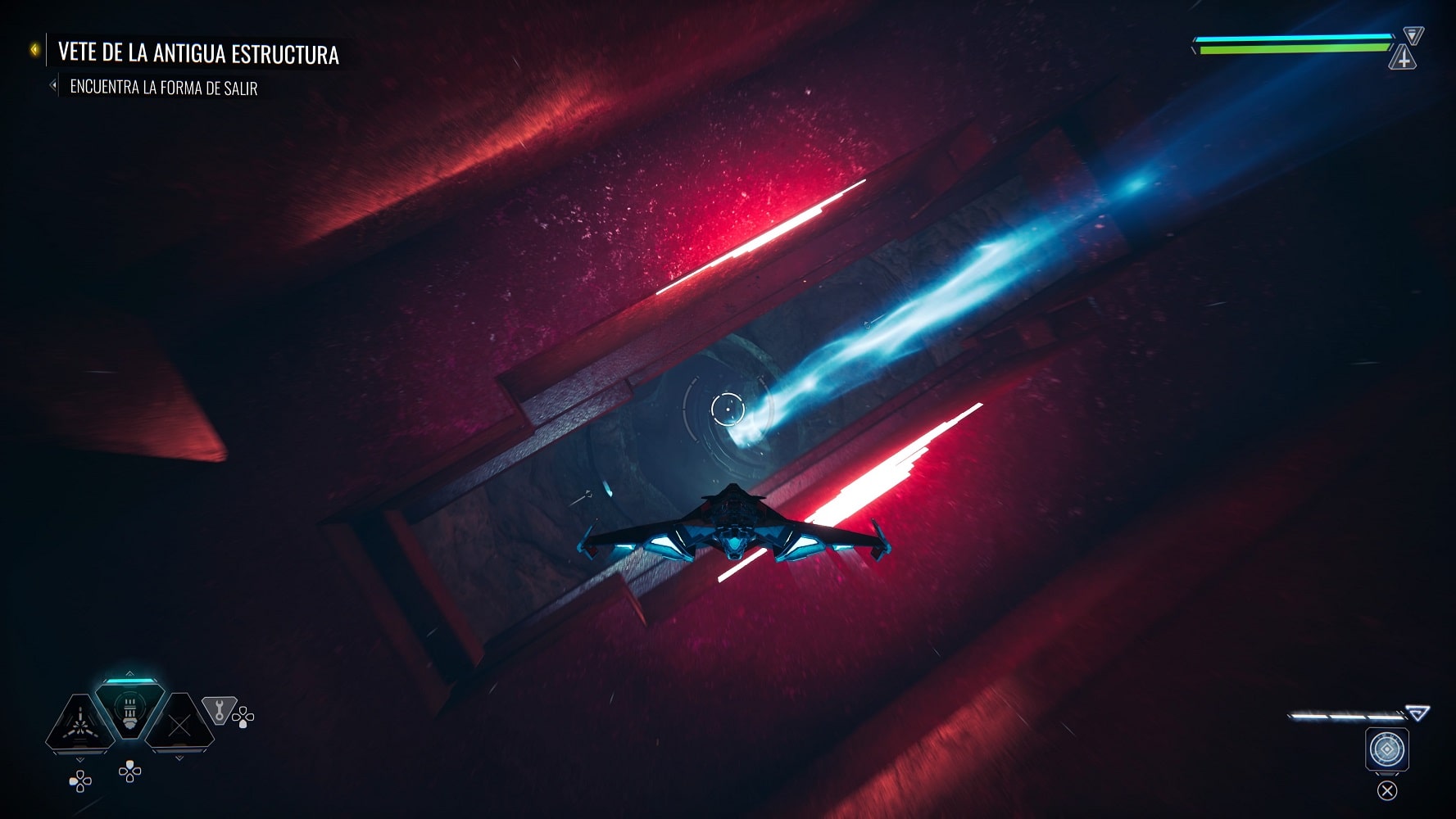 Podremos equipar hasta tres armas a nuestra elección y tener un botón dedicado a bonificaciones como reparar nuestra nave. Por otra parte, al presionar el botón X podremos escanear el mapa para encontrar los objetivos principales y también encontrar misiones secundarias, podría decirse que el botón X sirve de guía cuando estás perdido por el escenario.