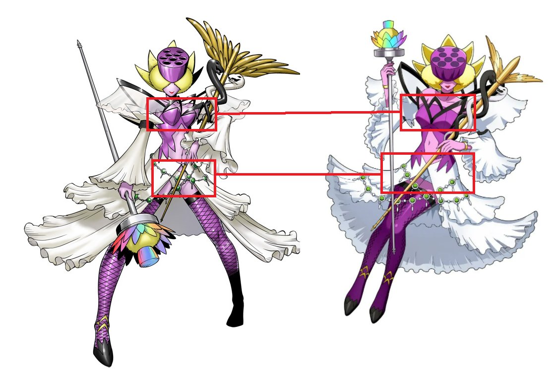 El usuario de twitter @UIforce_soul compartió unas imágenes pertenecientes a los nuevos modelos de Angewomon y Lotosmon del videojuego Digimon New Century, en donde se puede apreciar como ambos personajes sufrieron modificaciones.