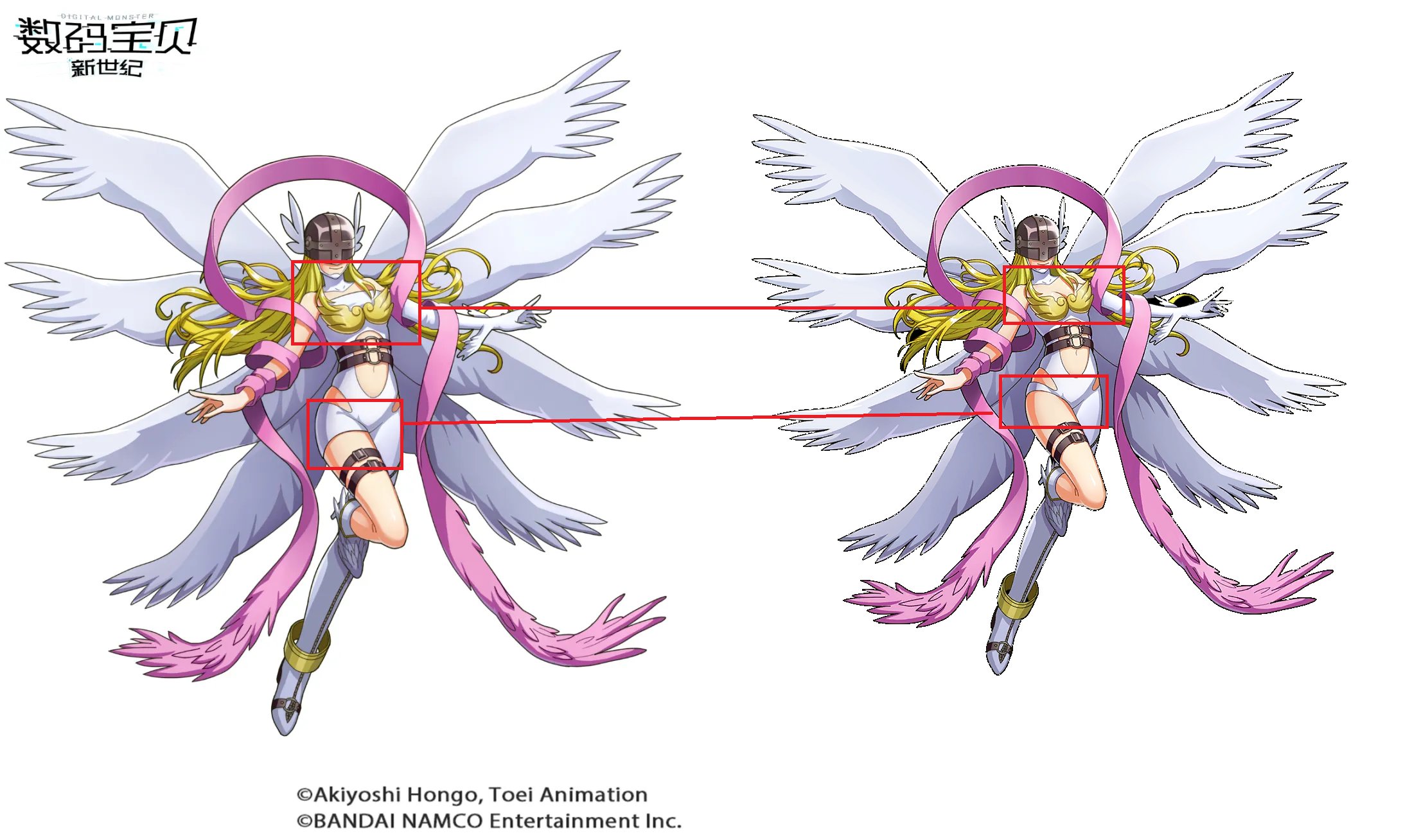 Pese a que los modelos de los personajes en el videojuego sufrieron de censura, en la portada oficial del título podemos ver el modelo original de Angewomon. Queda señalar que la censura se ajustan a las nuevas medidas que está tomando china para regular el tiempo de juego de los más jóvenes.