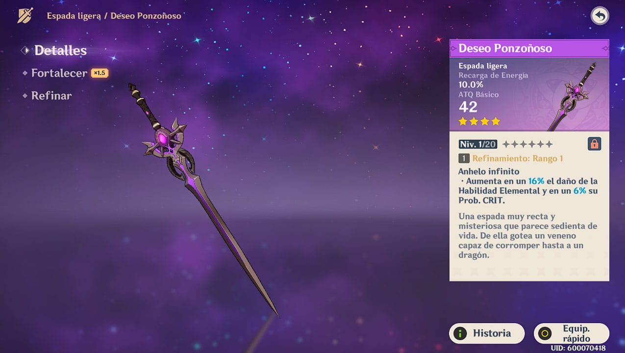 Deseo Ponzoñoso (espada ligera) 4★
