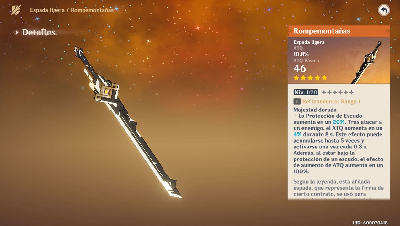 - Durante la duración del gachapón «Susurros enigmáticos» (desde el lanzamiento de la versión 1.2 hasta el día 2021-01-12 15:59:59), ¡la probabilidad de obtener el arma exclusiva de 5★ Rompemontañas (espada ligera) será mucho más alta!