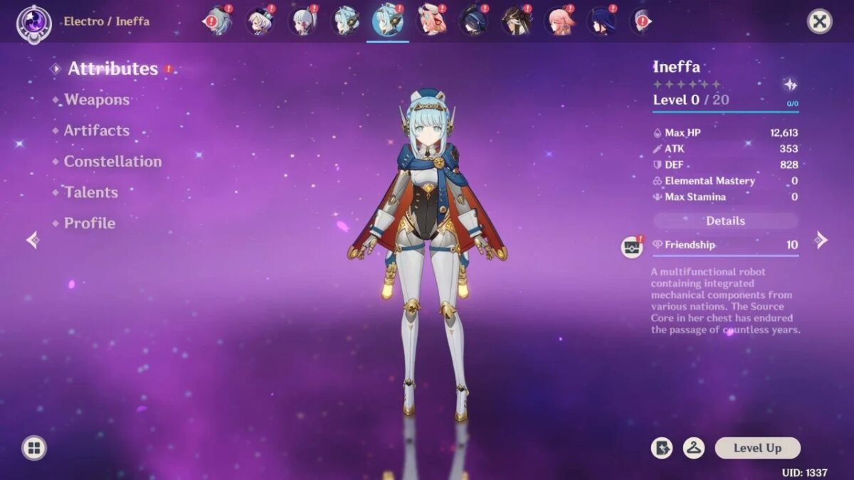 Como muchos pudieran imaginar, el personaje Ineffa al ser un robot, su elemento es electro y una publicación en la red social X (anteriormente Twitter) revela la siguiente descripción.