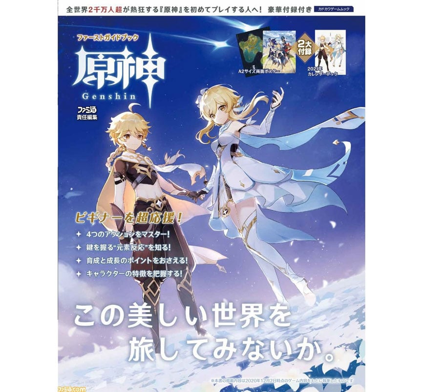 Hace algunos días se anuncio que el popular videojuego «Genshin Impact» contaría con una guía oficial la cual costará 1.100 yenes y sera lanzada por Kadokawa el 16 de diciembre de este año.