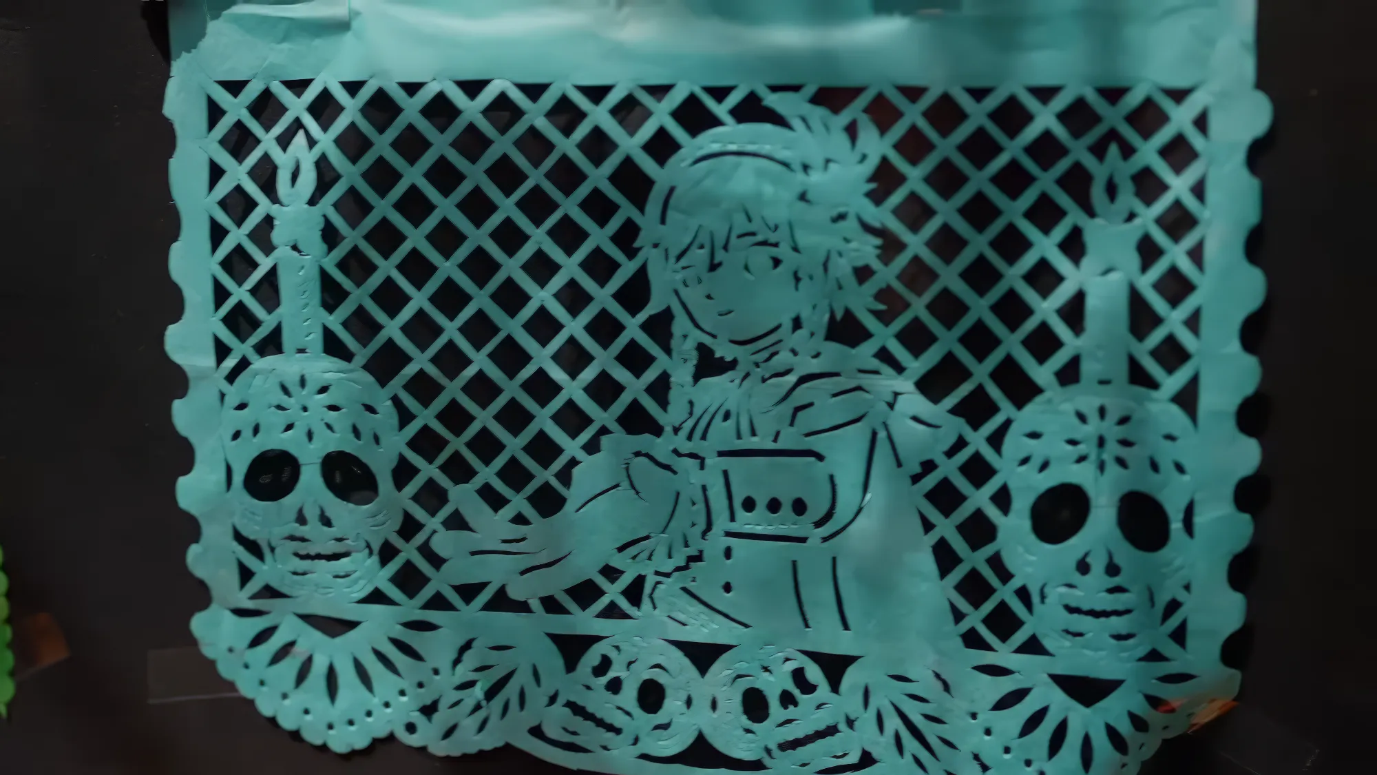 El alma de esta ofrenda reside en los vibrantes papeles picados, meticulosamente elaborados por el maestro artesano Pedro Ortega. Con sus hábiles manos, transformó simples hojas de papel en auténticas obras de arte, capturando la esencia de los personajes más queridos de Genshin Impact.