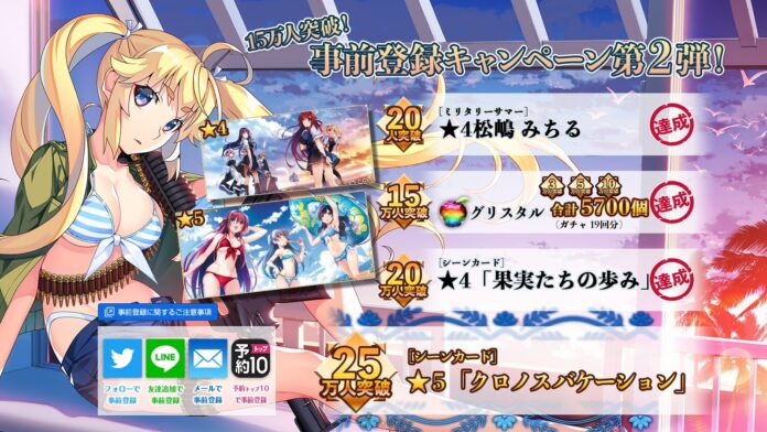 El juego celebra su pre-inscripción alcanzando los 200.000. Un nuevo objetivo de pre-registro de 250.000 se ha añadido a la campaña, donde todos los jugadores pueden obtener una tarjeta de ★5 «Chronos Vacation» como recompensa.