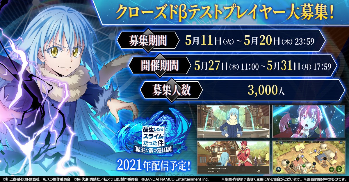 A través del sitio web oficial del videojuego, se anunció que la beta cerrada del juego titulado Tensei Shitara Slime Datta Ken: Maou to Ryuu no Kenkoku-tan ya está programado para lanzarse el 27 de mayo en Japón.