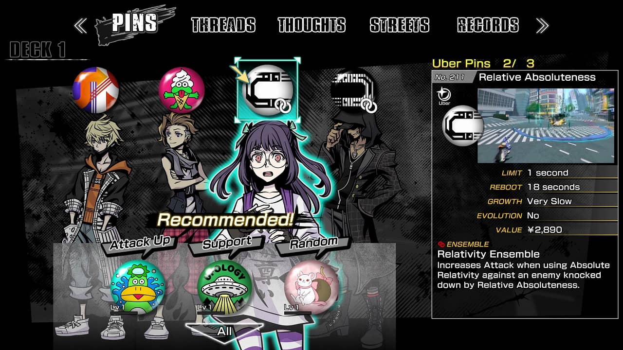 El juego ofrece una amplia variedad de pines, por lo que podremos armar nuestra party con las habilidades que más creamos que nos serán útiles, permitiendo al jugador crear múltiples estrategias.