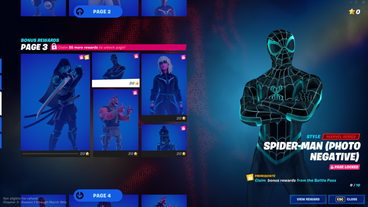 Ahora hablemos sobre las skins de nivel superior del primer pase de batalla del Capítulo 3, las skins de nivel superior de esta temporada viene en 3 variedades: Photo Negative, Scarlet Blackout y Gilded Reality.