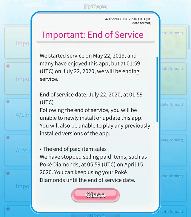 Las ventas de artículos pagados finalizaron hoy, pero aún puede usar los Poké Diamonds que ya compró hasta que la aplicación se cierre.
