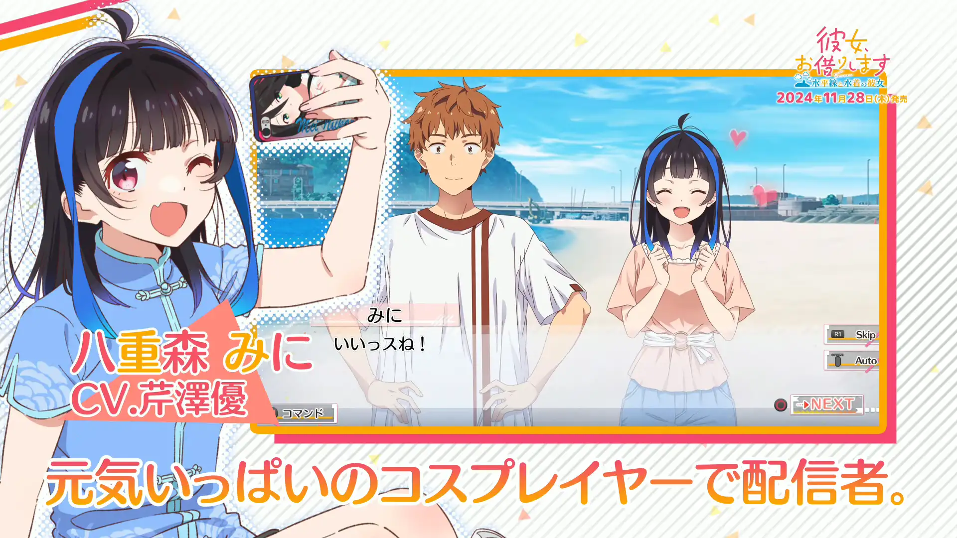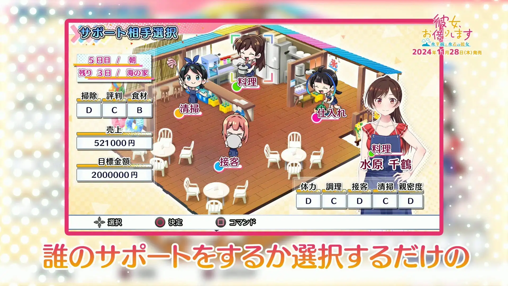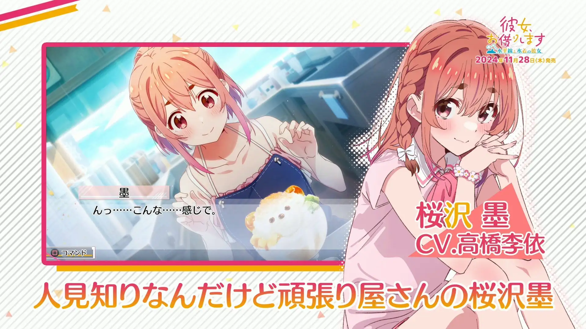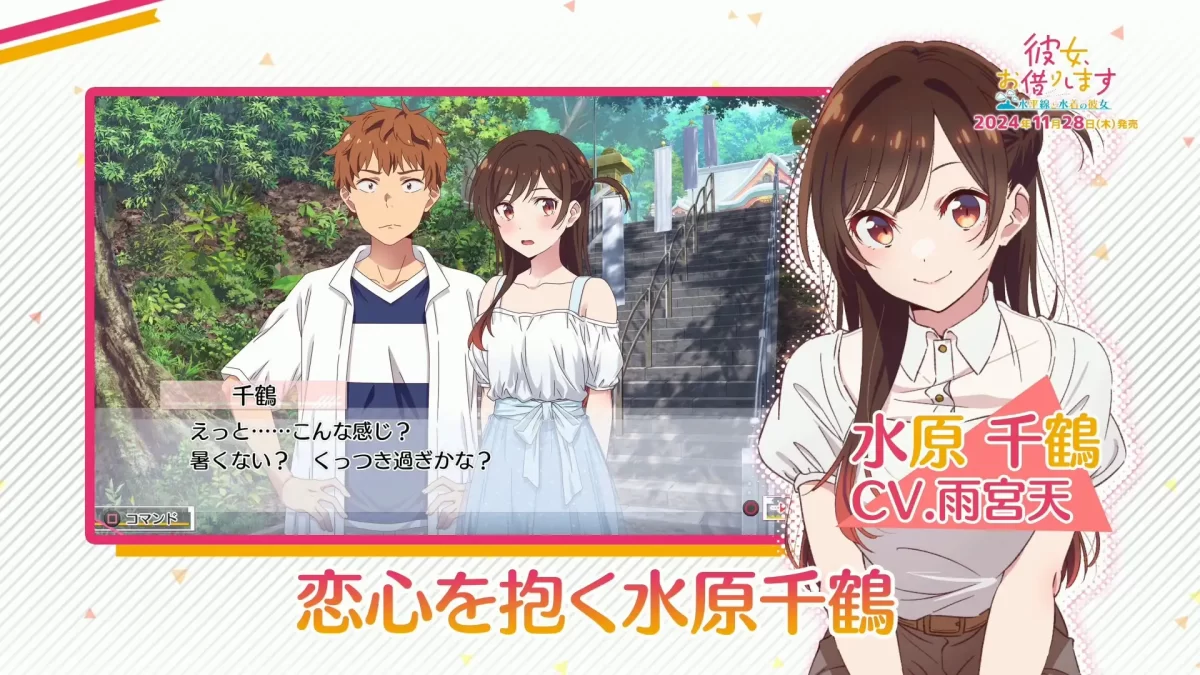 «Rent-a-Girlfriend: The Horizon and the Girlfriend in the Swimsuit» llegará próximamente a Nintendo Switch y PlayStation 4 en Japón el 28 de noviembre de 2024. Los fans pueden elegir entre la versión estándar, la edición limitada física y la edición de lujo digital, cada una ofreciendo una experiencia única y que sin duda dejara encantados a los fans de la franquicia.