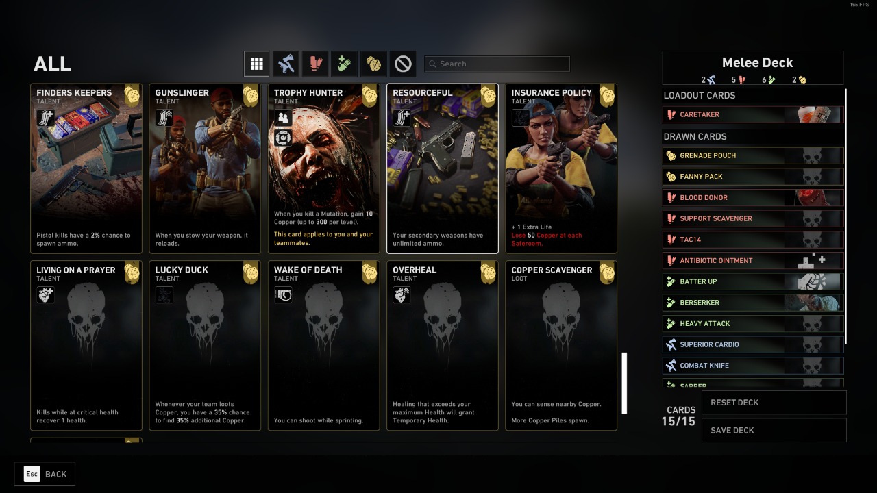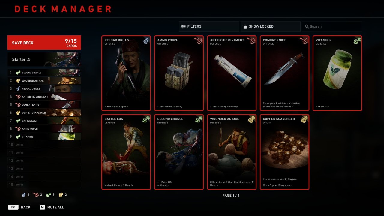 Para poder sobrellevar estas cartas de corrupción el jugador tiene la opción de equipar y personalizar un deck o mazo con las cartas que se mencionó anteriormente las cuales sirven para aumentar las probabilidades de sobrevivir, o al menos eso deberían hacer pues si decides jugar en la dificultad difícil o la más difícil el efecto de las cartas que uno decida equipar de poco servirán.