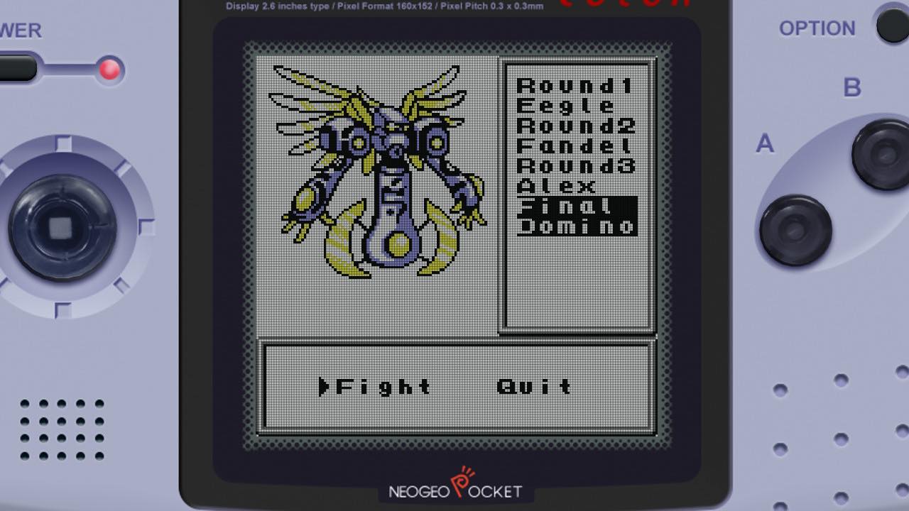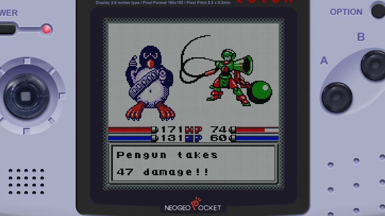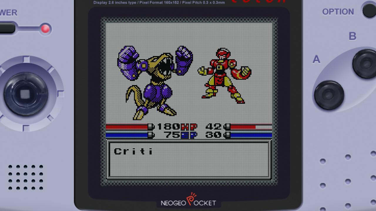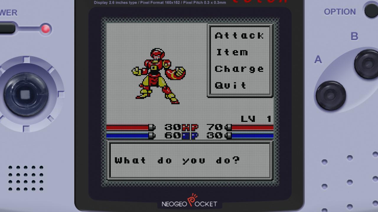 Por último, tenemos distintas formas para “adornar” la aventura que experimentaremos en Biomotor Unitron. Al ser un juego con un aspect ratio de 4:3, contamos con mucho espacio libre en nuestra pantalla. La solución que se le dio a este “problema”, es que podemos hacerle zoom a nuestro juego, y/o podemos rellenarlo con una textura que simula ser un Neo Geo Pocket Color. No es una opción que realmente haga la diferencia en cuanto al juego, pero se agradecen estos detalles.