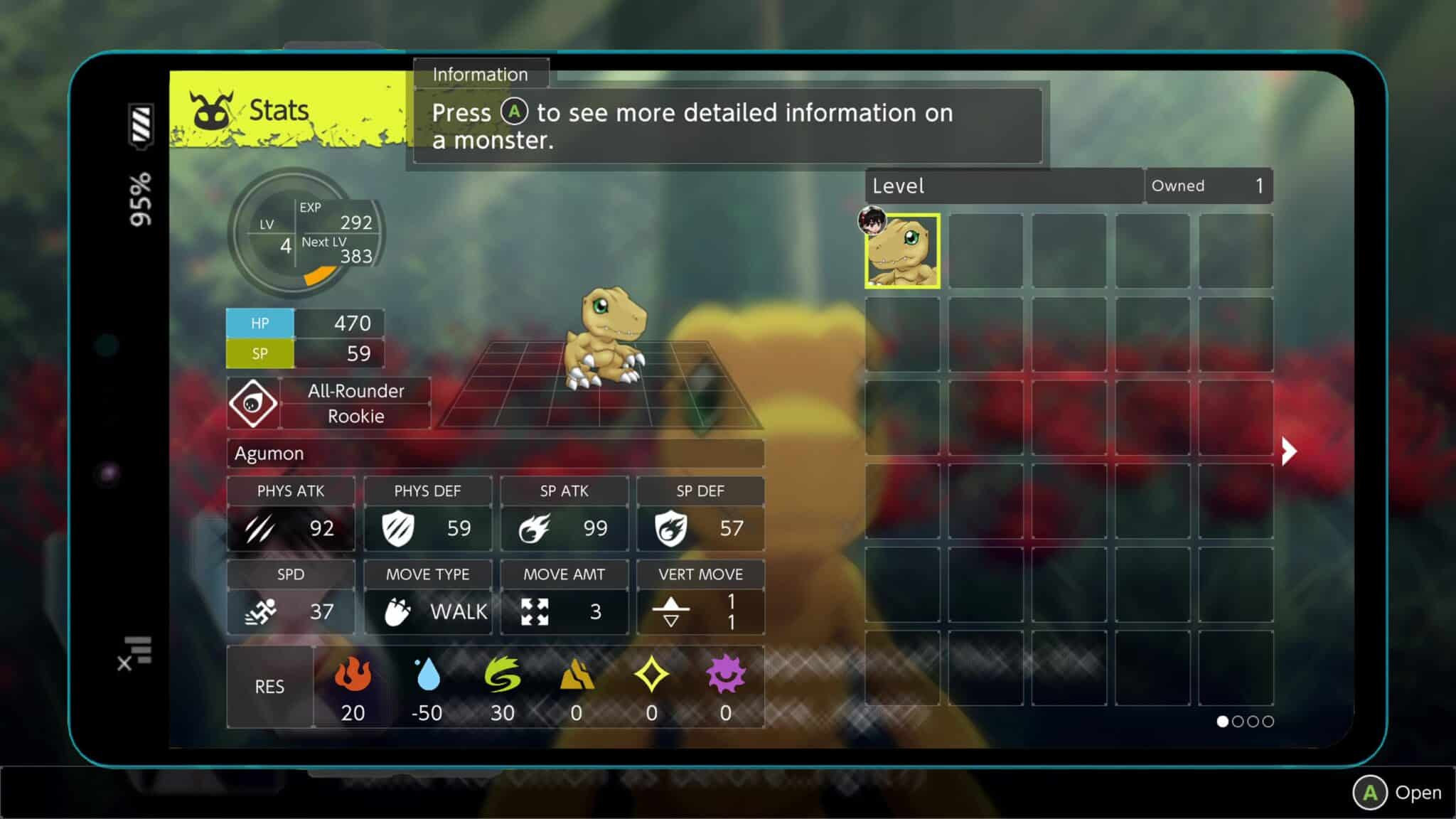 En general el sistema de combate es bastante básico, pero el elemento diferenciador de Digimon Survive son las mecánicas de evolución. Al ir avanzando en el juego iremos desbloqueando diferentes evoluciones para los Digimon, permitiéndonos fortalecerlos en batalla. Sin embargo, no es una evolución permanente, cada que queramos realizarla tendremos que gastar SP, y al ir pasando los turnos vamos consumiendo más y más de estos puntos, por lo que eventualmente el Digimon vuelve a su forma original. Con todo esto, puedo decir que este sistema me pareció sumamente interesante y divertido. Lograron darle un giro estratégico a las evoluciones para añadir más profundidad al combate.