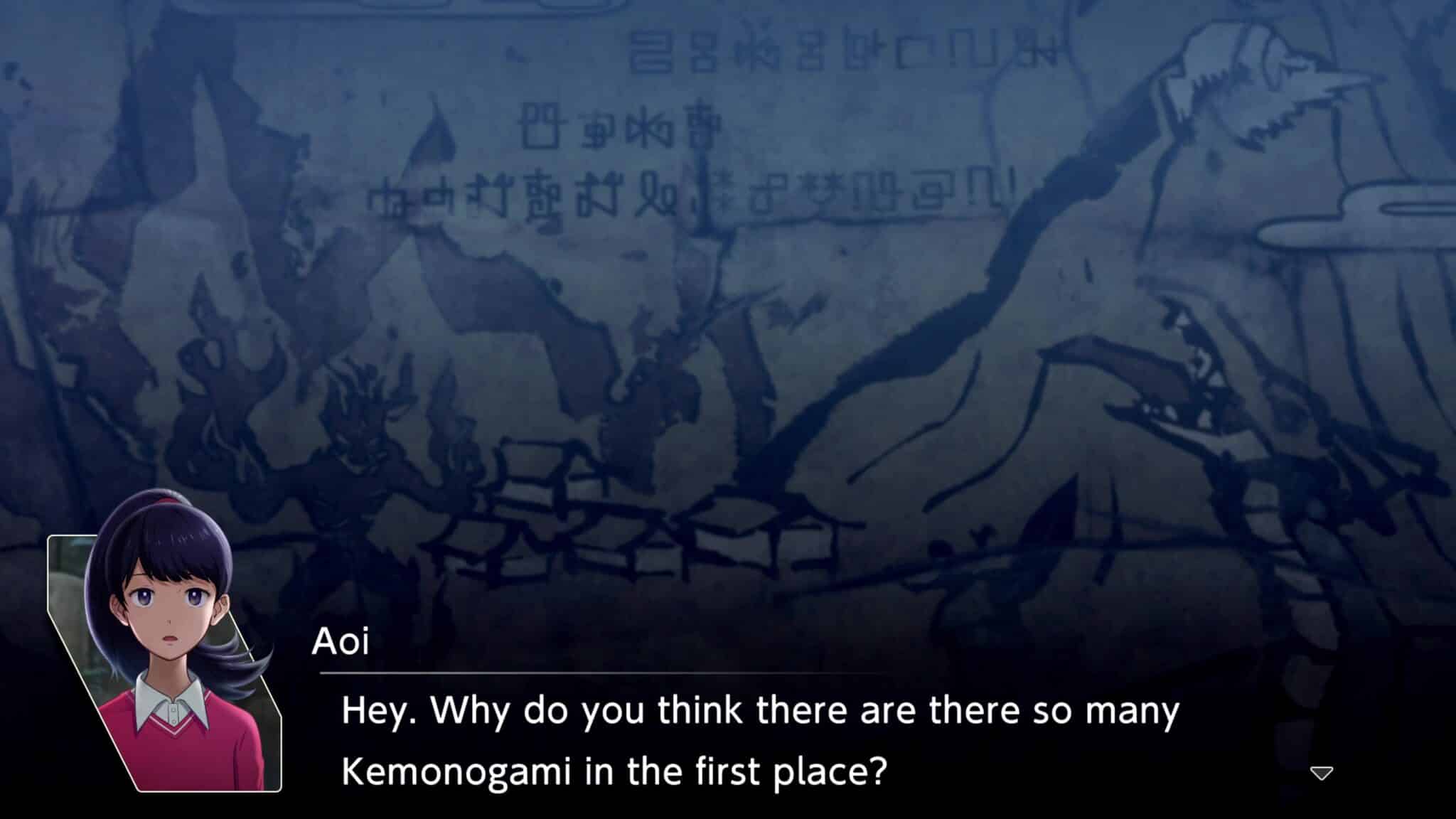 Como mencioné anteriormente, toda la trama tiene un tono más oscuro de lo que podríamos pensar. Creo que con el propio tema de los sacrificios humanos para los Kemonogami ya es suficiente para darnos cuenta de esto. No quiero abundar más en la narrativa del juego porque ya sería meternos en territorios de spoiler, y debido a que en su gran mayoría es una novela visual, revelar datos profundos de la historia sería arruinar la experiencia del juego. Pero tengan en cuenta que podría llegar a ser una trama un poco “pesada” para algunos si es que esperabas temas más ligeros.