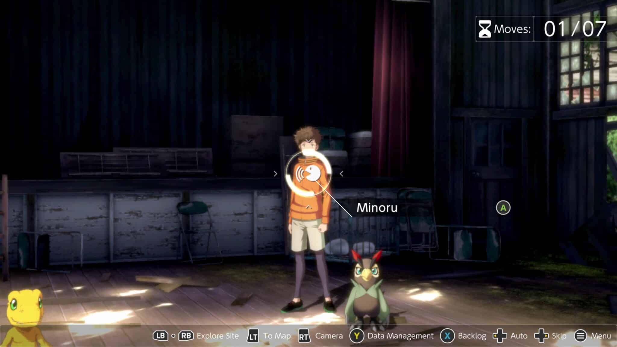 Otra de las cosas que tenemos disponibles en Digimon Survive como novela visual, son las secciones libres de exploración. Aquí podremos movernos libremente entre diferentes secciones del mapa para poder hablar con los personajes que nosotros queramos. Sin embargo, tenemos un medidor de tiempo que limita nuestras acciones, por lo que tendremos que elegir bien a los personajes con los que queremos interactuar. Hablar con ellos nos puede beneficiar subiendo nuestra afinidad, o encontrando items.